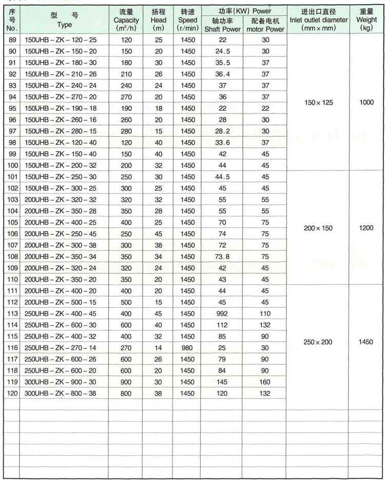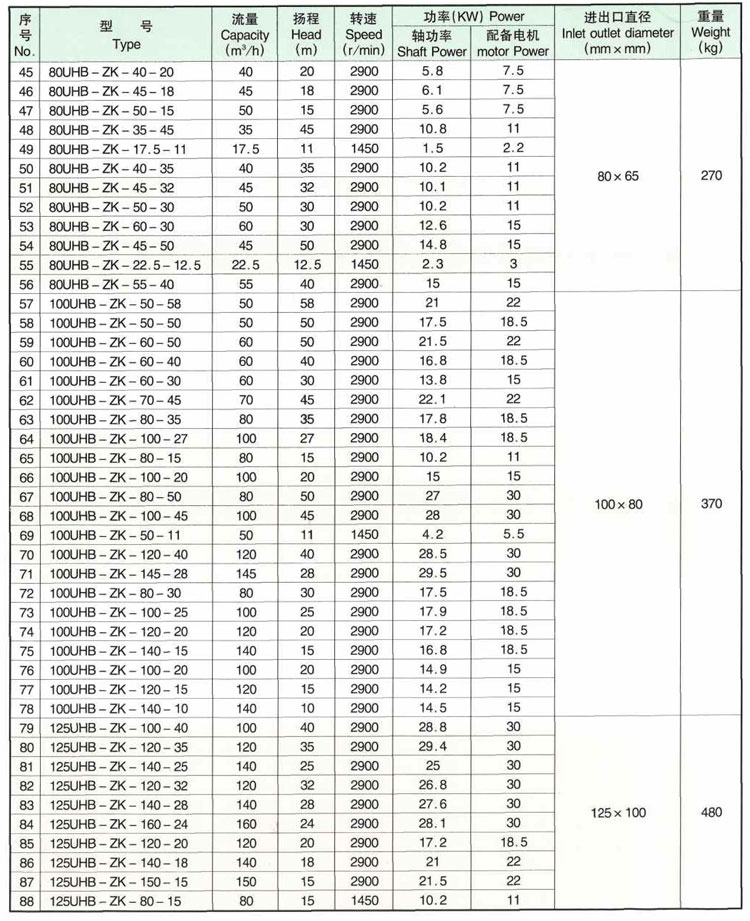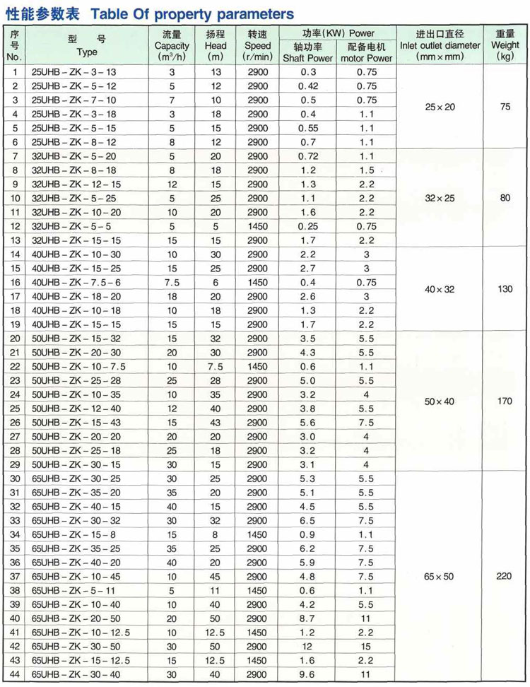 5、主要技術參數:使用溫度一20℃一80℃(對特殊要求、使用改性材質,可提高到105℃},進口中32mm一中25Qmm,流量5一600m今h,揚程50m以內。