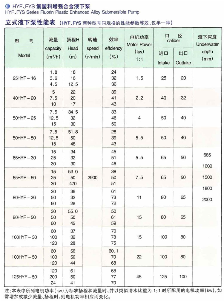 HYF耐腐蝕立式液下泵主要輸送弱酸、堿、鹽、飲料、油品、有機溶劑等腐蝕性液體。使用溫度不超過lOCTC,主要過流部件材料有FRPP、F26、F46、UHMW-PE,氯化聚化聚醚。主軸材料有1Crf8Ni9Ti、1Cr18、Ni12Mo2Ti、鈦合金(TA)v優質碳鋼外包聚丙烯、氟塑料、超高分子UHMW-PE等,它具有體積小、重量輕、安裝方便等優點。